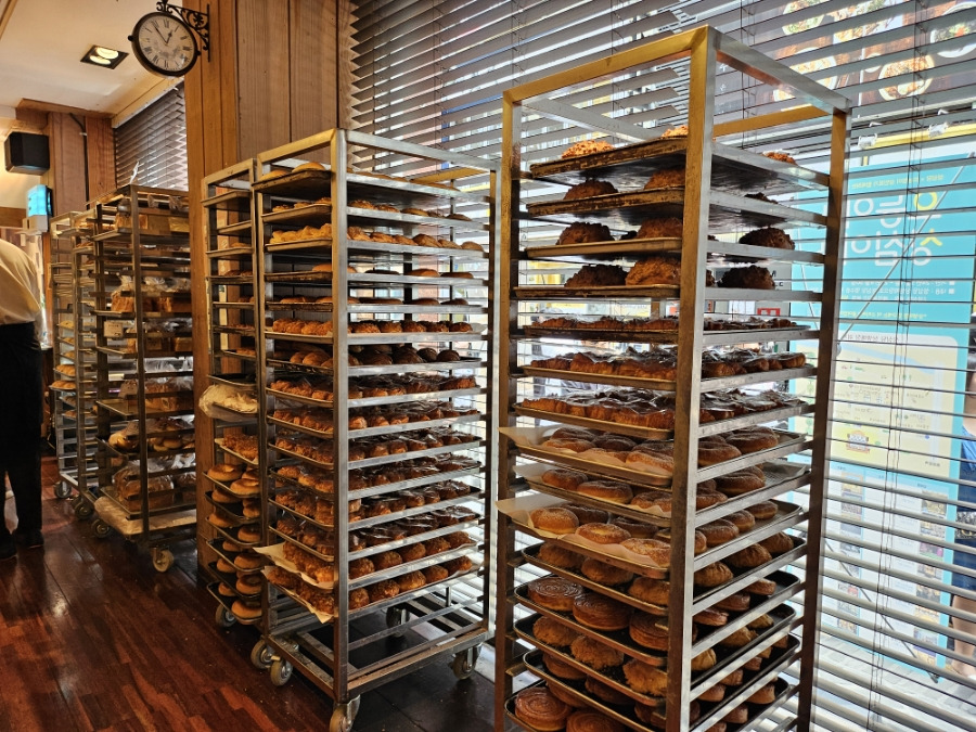뒤쪽에도 이렇게 갓구워진 빵들이 엄청 쌓여있습니다.